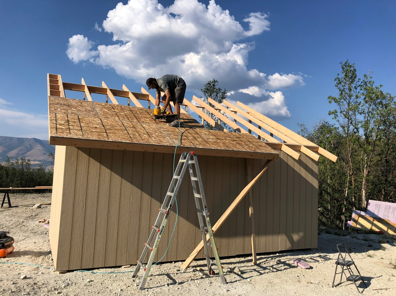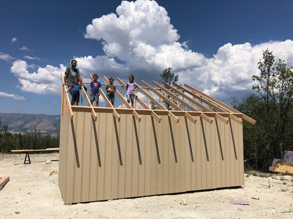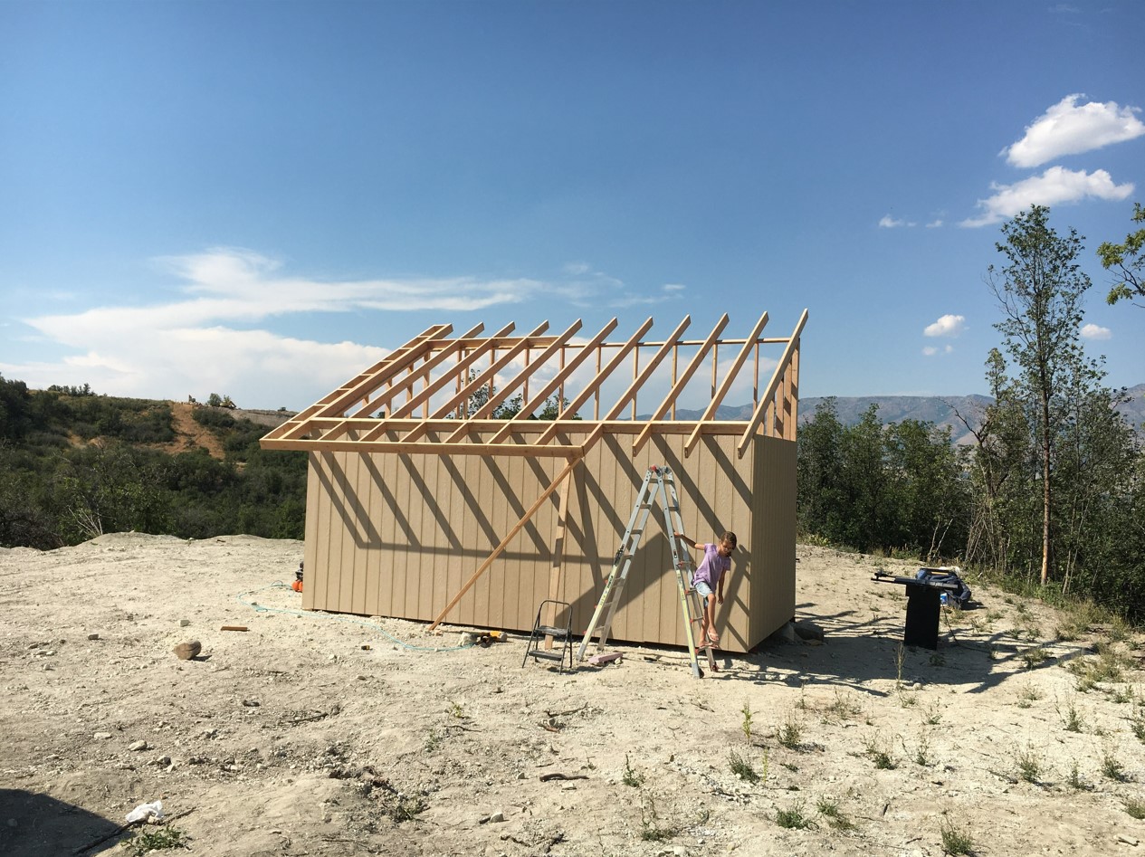 We did get the walls up, some of the siding, some of the loft joists, most of the roof joists, and some of the roof decking.