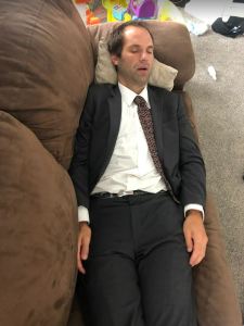 After not sleeping all week while backpacking (very little at least), and a solid 16 hour day working on the shed, I got a little tuckered out. Karianne was kind enough to capture the moment after church when I hit my wall and couldn’t keep going. 🙂