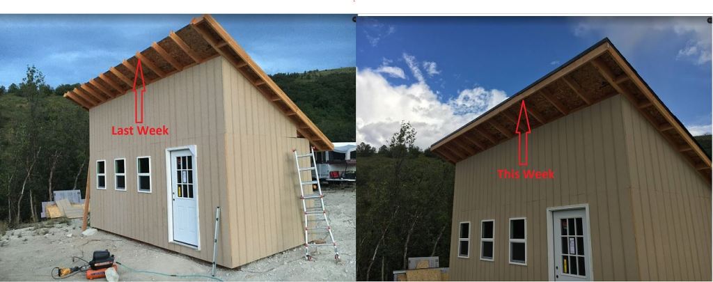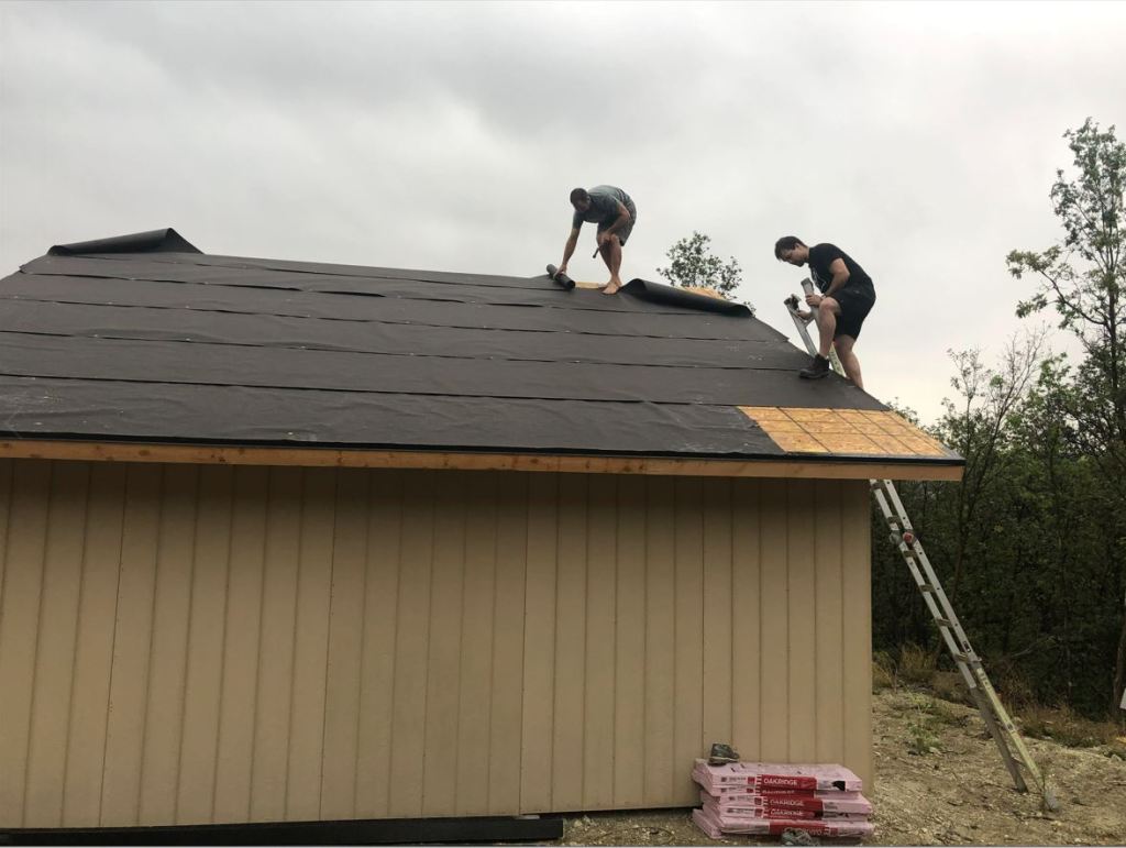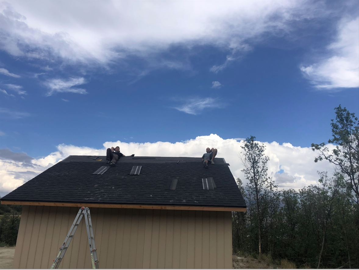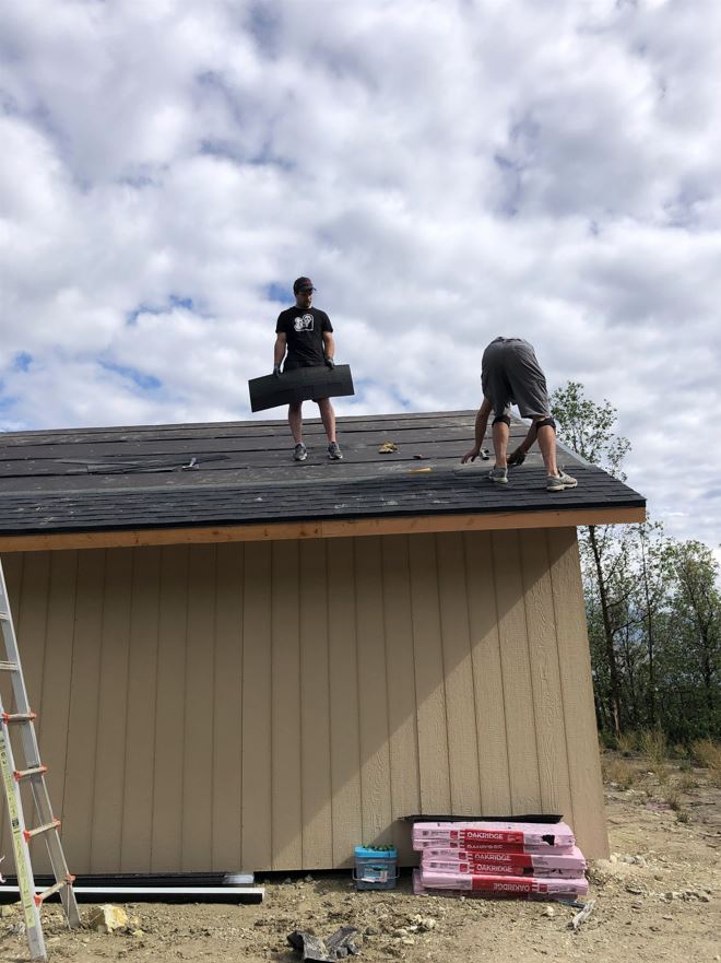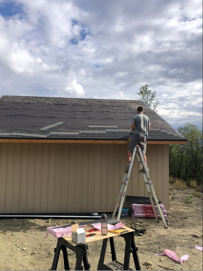 We did get really lucky this week. Johnathan, my youngest brother came down from Boise to help! And just his luck.. it was time to put on the roof (tar paper and shingles).