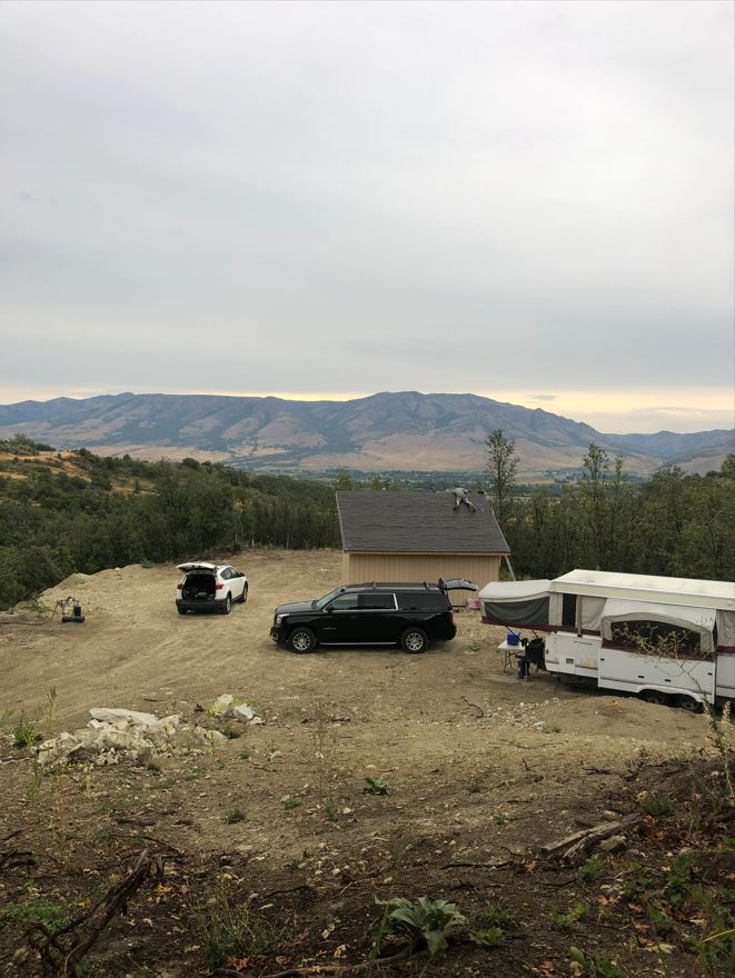 After work on Friday, we tried to race up to the land to beat a big forecasted storm. Which was kind of important since we needed to make the shed waterproof. On the way up we did pick up the rails for the solar panels and that slowed us down. We mostly made it in time, but we were dealing with some precipitation Friday night. John and I tried to get the tar paper up quickly and we mostly made it. But as you may notice in we decided to go barefoot since it was a bit slippery.