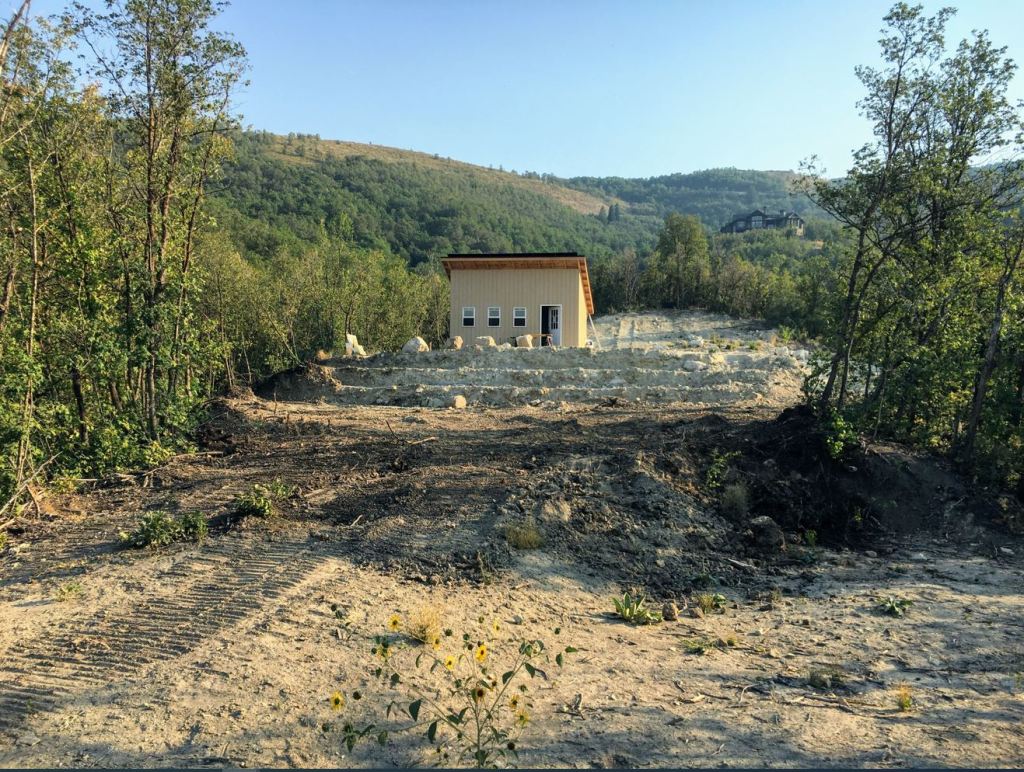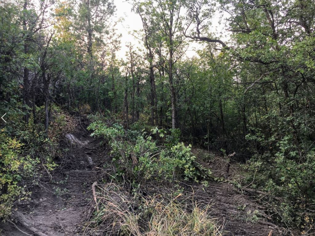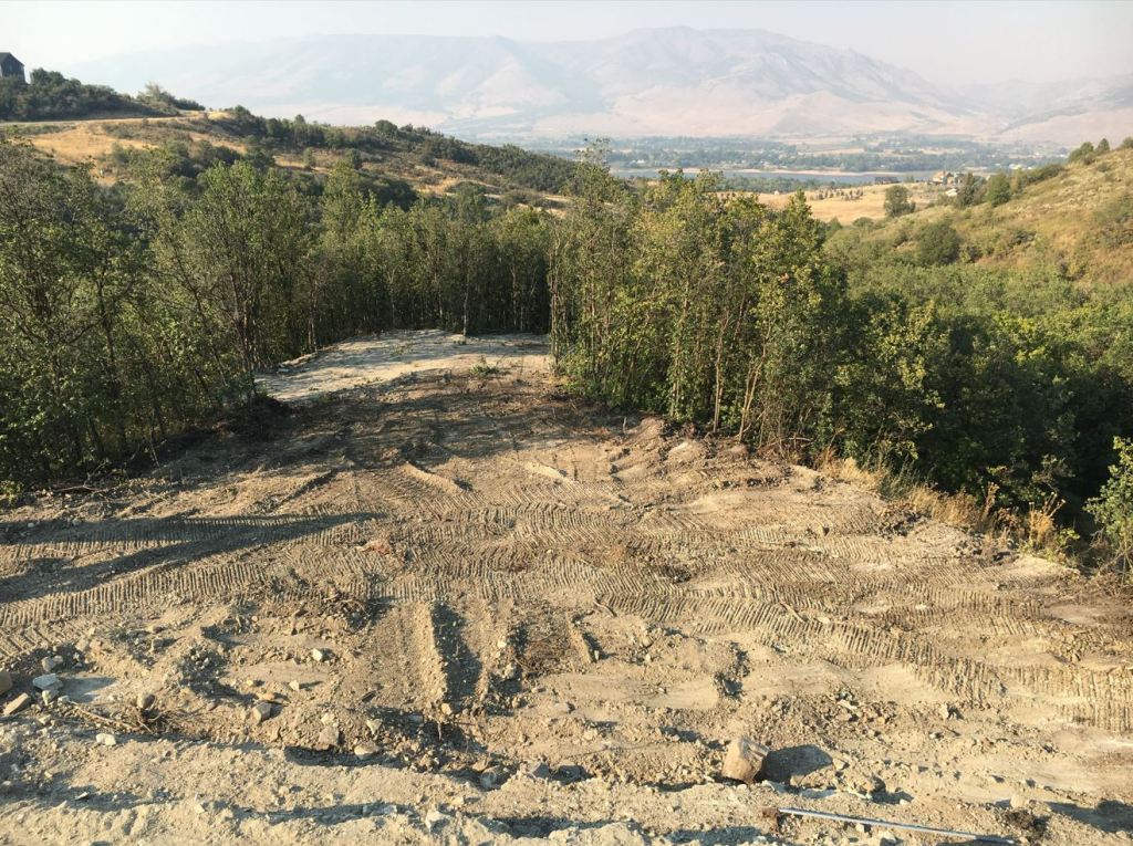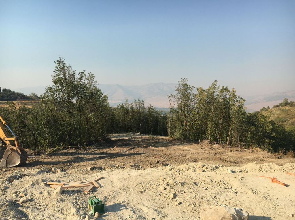 Then, I made the first cut for the septic leach field. The field has to be down off the ridge, and unfortunately pictures don’t do it justice, but it was a tad scary getting the excavator down to the desired location.