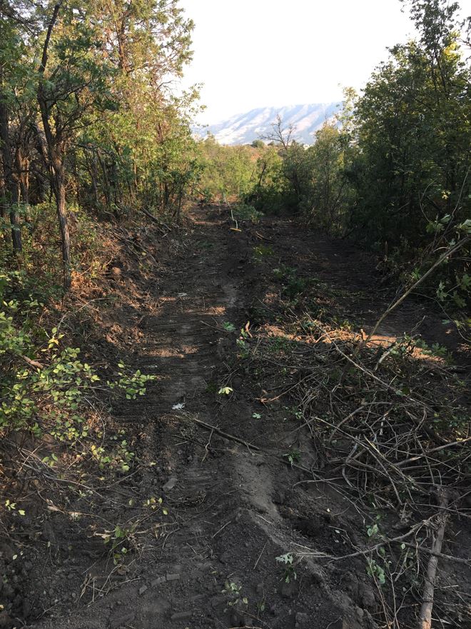 And once again, I had to take out a few more trees 😦 . But I am actually really excited about that area. I think it’s going to be another really cool spot in our yard, a bench kind of down off the main yard that is surrounded by trees. The first cut I did is 100′ long.