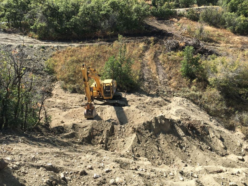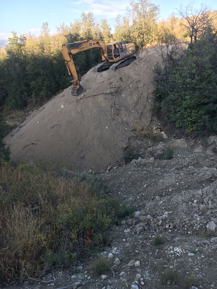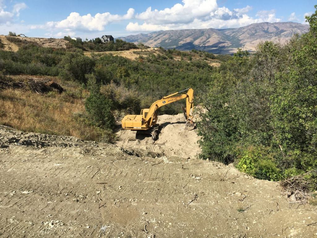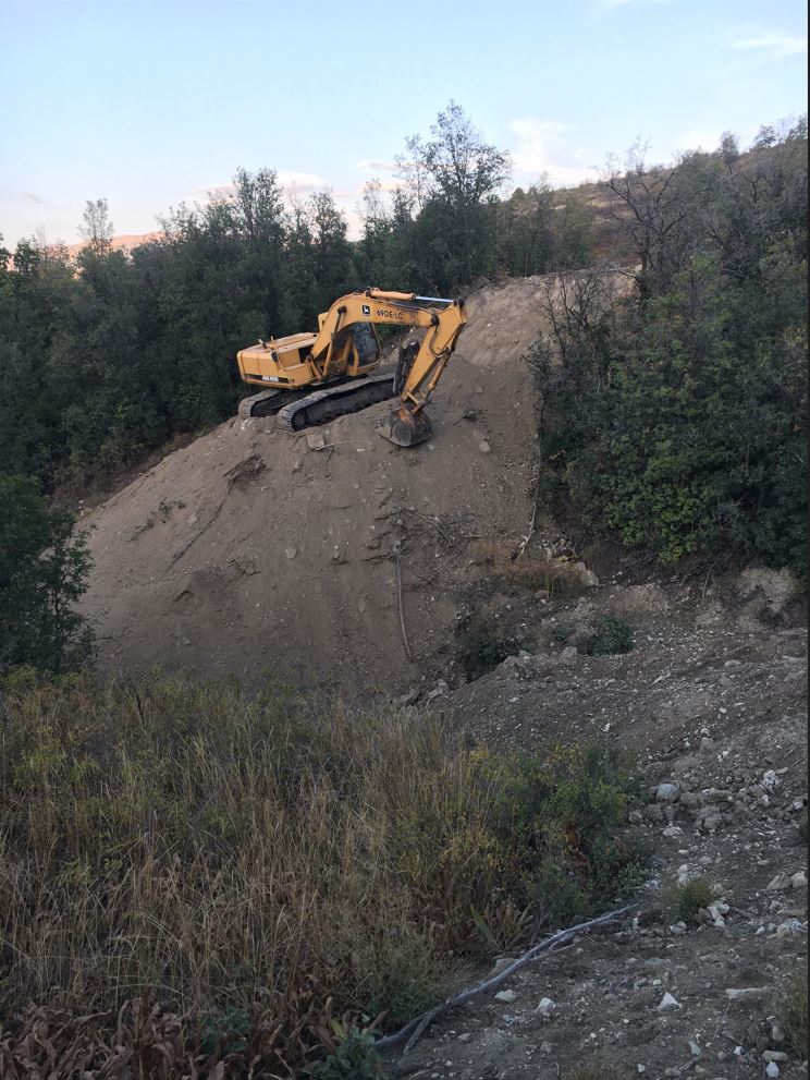 Anyway, this was a huge milestone, that means my well is now approved and I am ready to make things happen like the septic system! That was a reasonably good start. We made it up to the land and I jumped right into the excavator and started moving my huge pre-house excavation dirt pile down the mountain. I had kind of played it out in my head how it would work out. I would start at the top and work my way down the mountain moving the pile with me. It worked as I thought it would but it was a bit more precarious as I had a lot less real estate to work from than I had anticipated. I also knew there was huge storm forecasted that night, so I had to get my excavator out of there and off of the soft dirt. I made it just before dark and all was well π