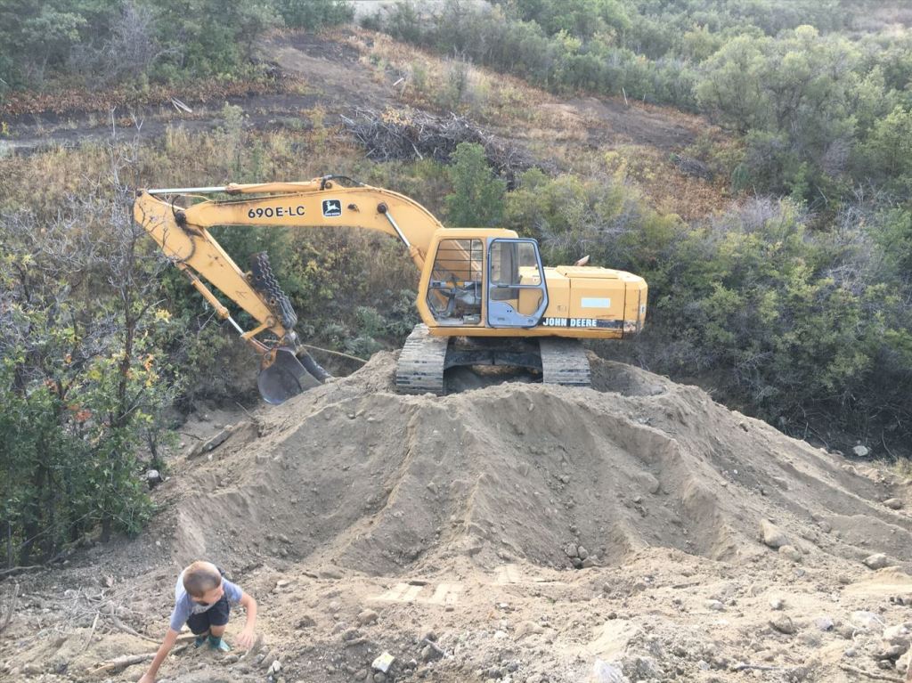 After the rain stopped that morning it turned into a beautiful day and the kids really enjoyed playing in the dirt pile down by the excavator for the balance of the day. They were pretty sad when I said I wouldn’t be leaving it that way indefinitely π