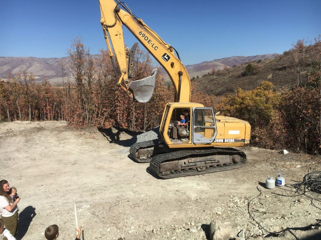 . Our friends Taber and Rebecca and their kids also stopped by to see all the progress and to give a couple of their kids rides in the excavator :).