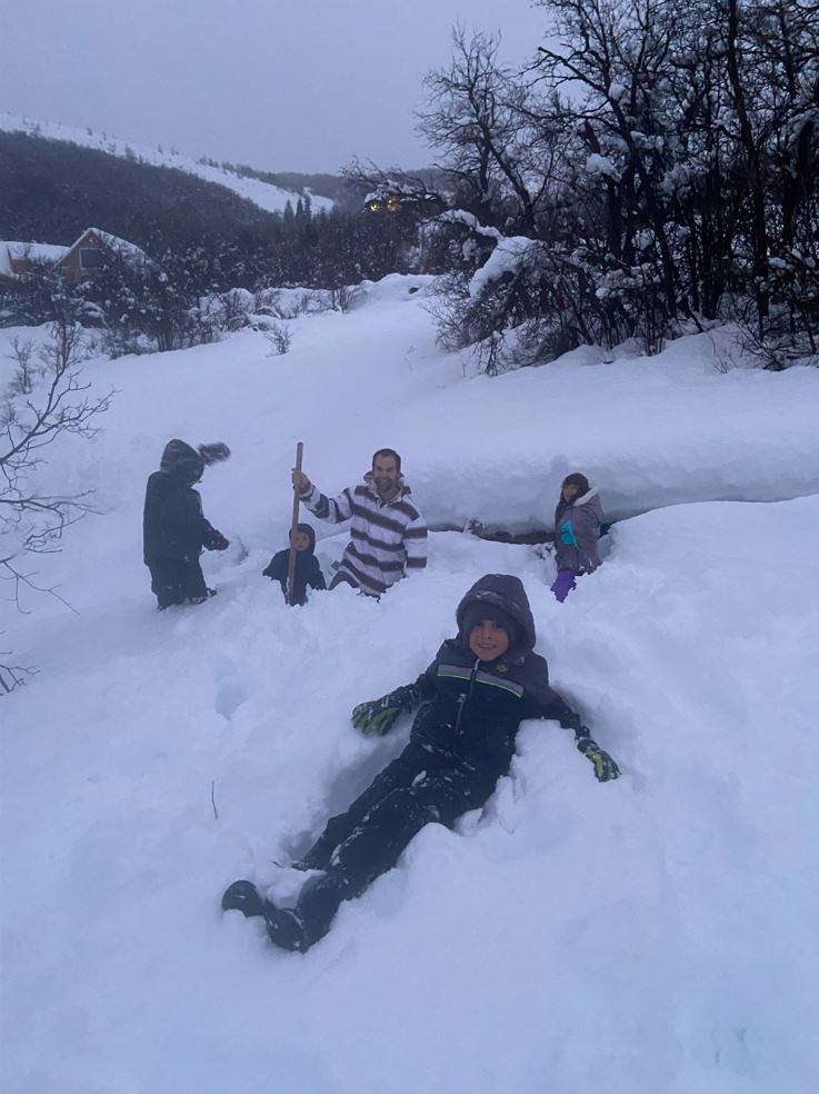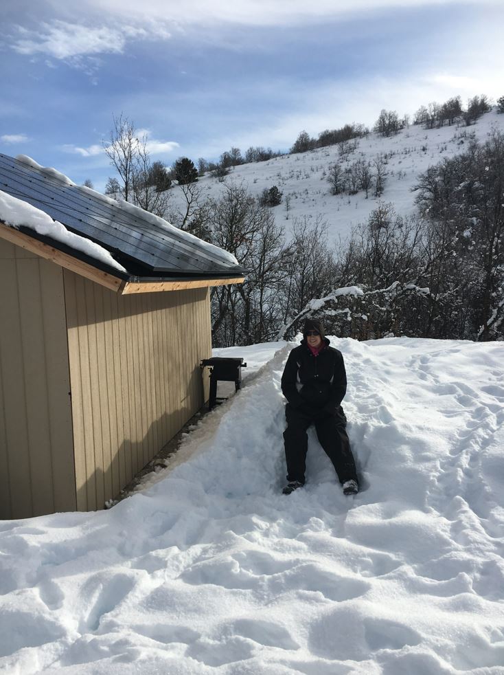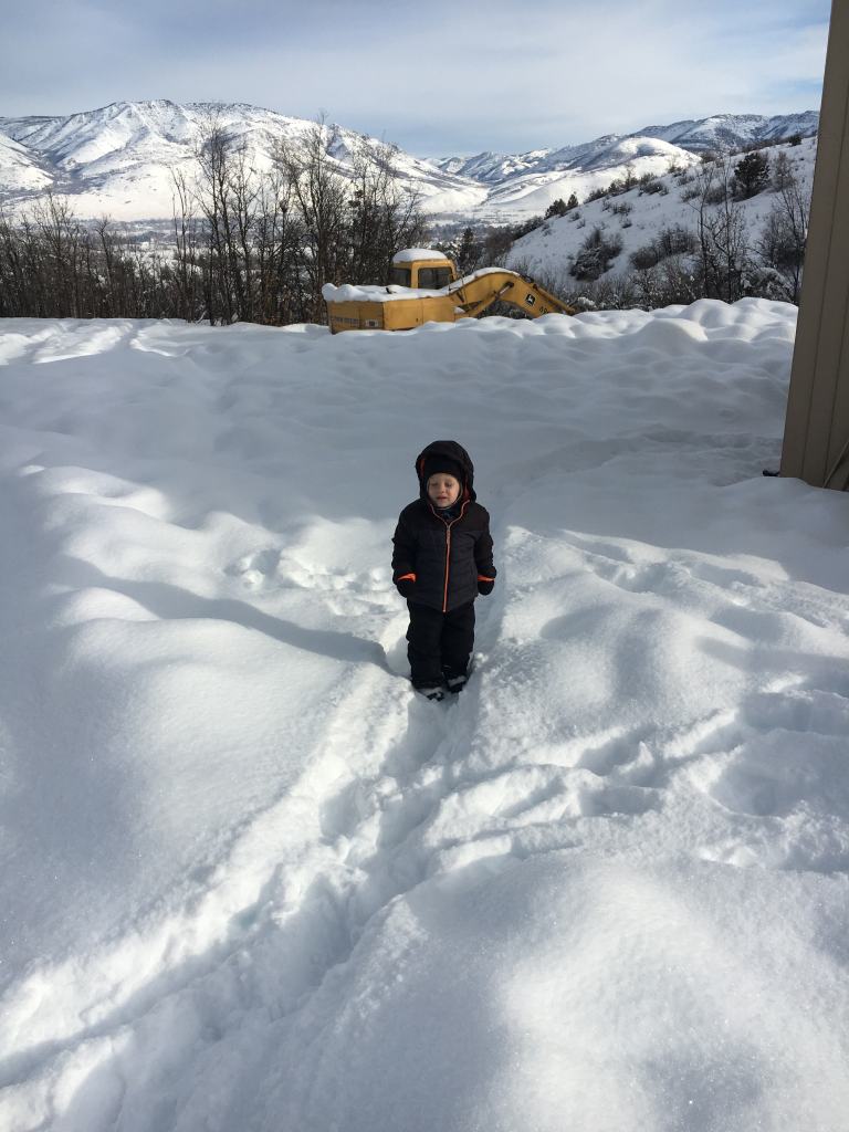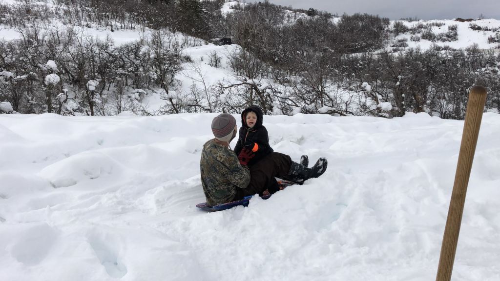 Then yesterday we went up for the whole day as a family for some fun in the snow. And there is SOO MUCH snow. Which is good. Utah needs moisture desperately.. but of course it is the winter before I want to build. It will take some time to dry out! The first trip for the sleepover I was shocked when we arrived to find 2 feet of fresh snow up there! We had to park at the top of the driveway and carry all of our gear (and a kid or two) the 400+ feet down the driveway through the snow. It was a workout.. and I was wondering what I had gotten myself into! That night I got the excavator out and was able to drive through the snow, in the dark, up to the car and back. That gave us a much better walking path! And to be honest .. smashing down that much snow in the dark was probably one of the coolest things I have done in that excavator. It was super fun… I was like a little kid on Christmas morning