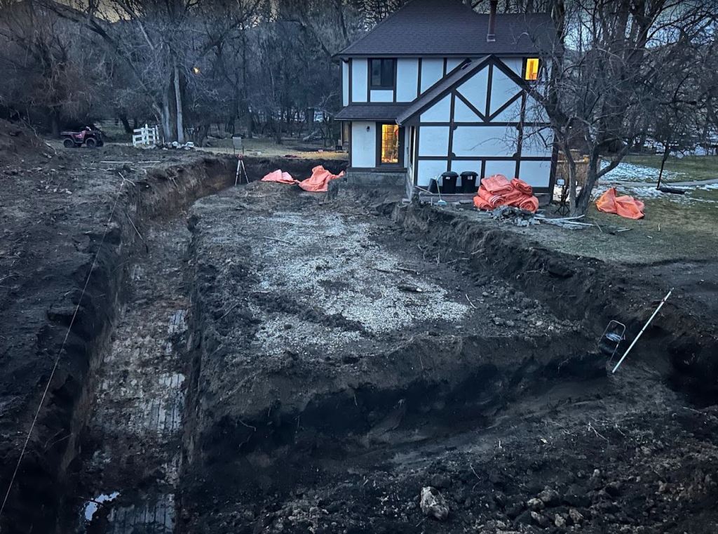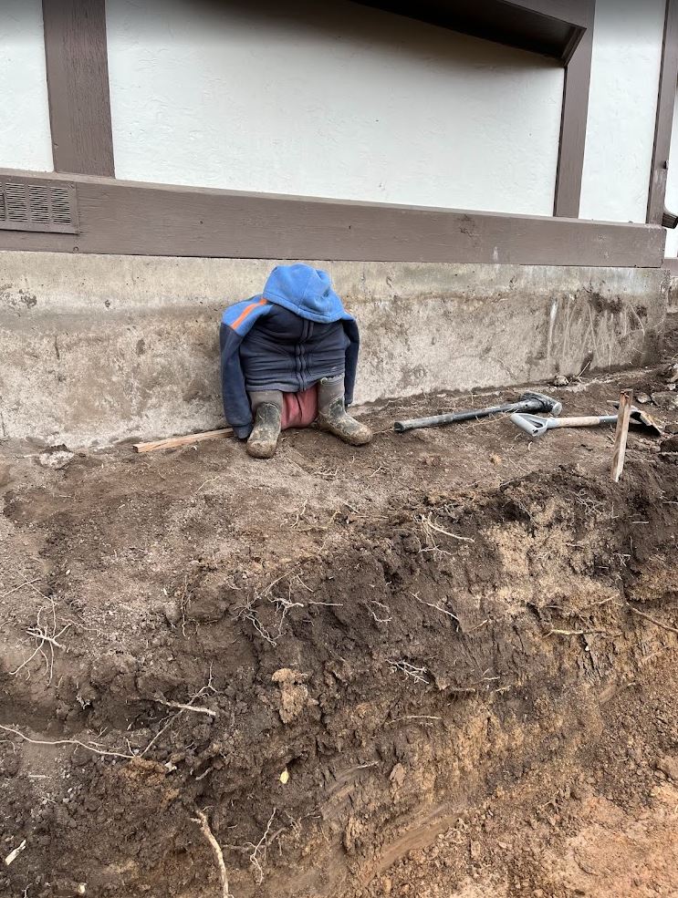 On Saturday, I was all hustle, from sun up to beyond sun down. We just barely got all the trenches dug before the sun went down. But that last third of the trenches didn’t get leveled out. In the end I think that is ok though because that 1/3 of trench is full of groundwater making the ground all mushy. Because of that we are going to have to get a truck load of rocks and dump them in and compact them after over digging a bit. Kind of a bummer we have to do that but we do want a solid foundation! Big shout out to Karianne for standing down in the trenches all day long running the laser. Couldn’t have done it without her!