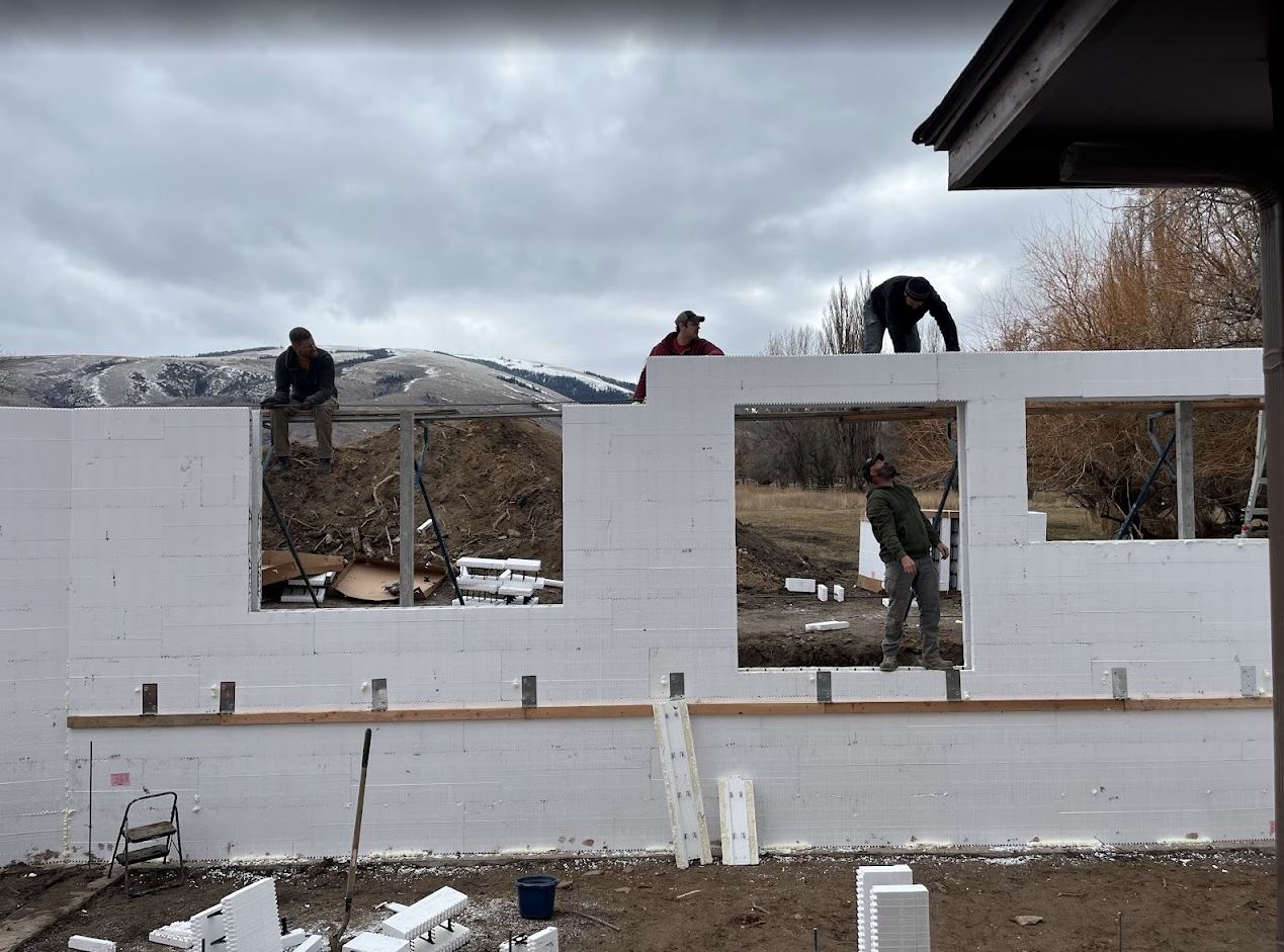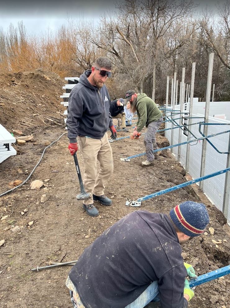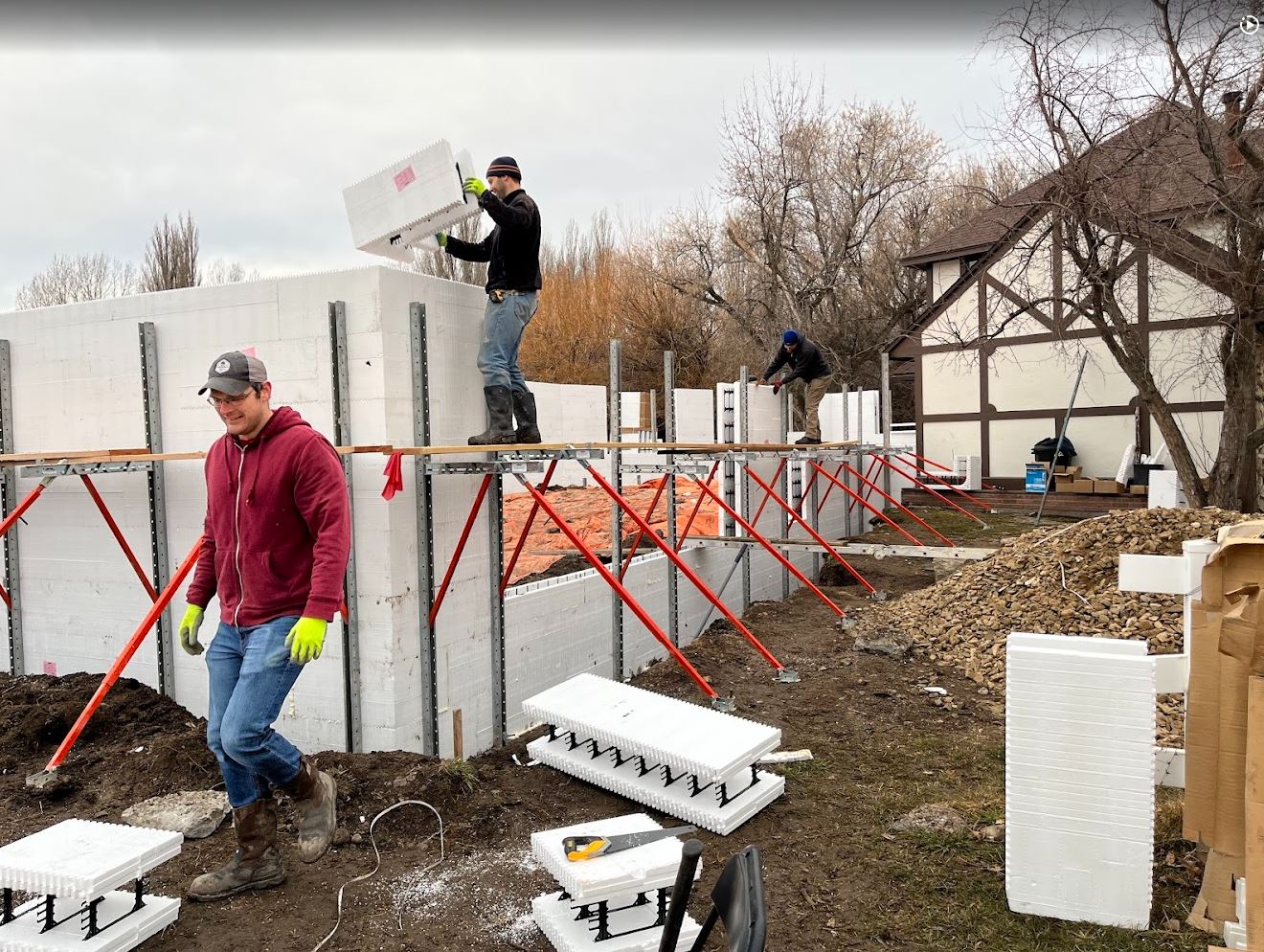 I have to say how grateful I am for the help we received! John, my “ICF guy” led me to believe that we’d be able to finish a lot faster. And with that I didn’t even think I needed help. Boy was I WRONG! There was sooo much to do. We will be ready for pour day tomorrow, but only barely! Biggest shoutout goes to Bret Dunlap. He has been here all day every day and has been a huge help. Bret is the little brother (but bigger/taller 🙂 ) of Brock Dunlap who was my roommate in college. Bret wants to build an ICF house but hasn’t been able to find anyone that would let him help out (contractors don’t want the liability). He came out all the way from Colorado and has made a huge difference. Not sure where we’d be without him.