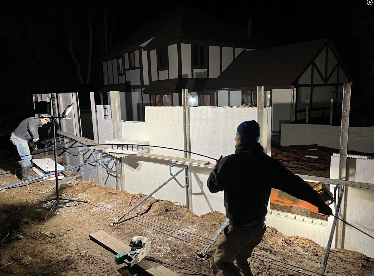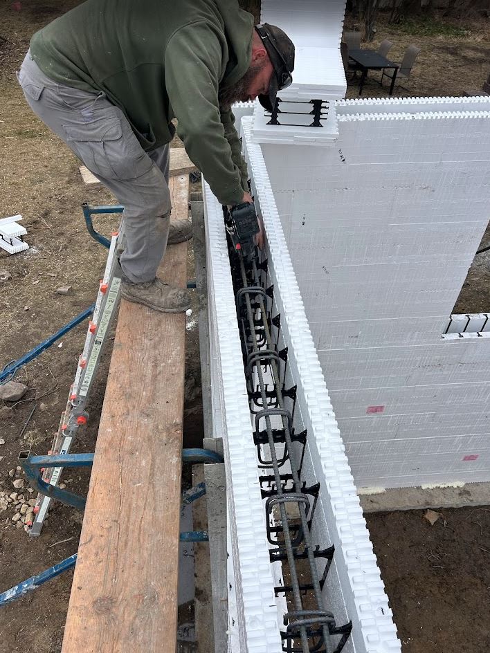 I did NOT anticipate the full scope of the work for the ICFs as I’ve previously stated. I also didn’t realize that I’d be working off a rickety 12′ tall scaffold. Those were the two biggest misses I had as far as what I was expecting. I am very very grateful we decided to pay to have John here to teach us all. There are a lot of things I would have missed and I am really grateful for all he has taught us. He is a lot of fun to have around as well.