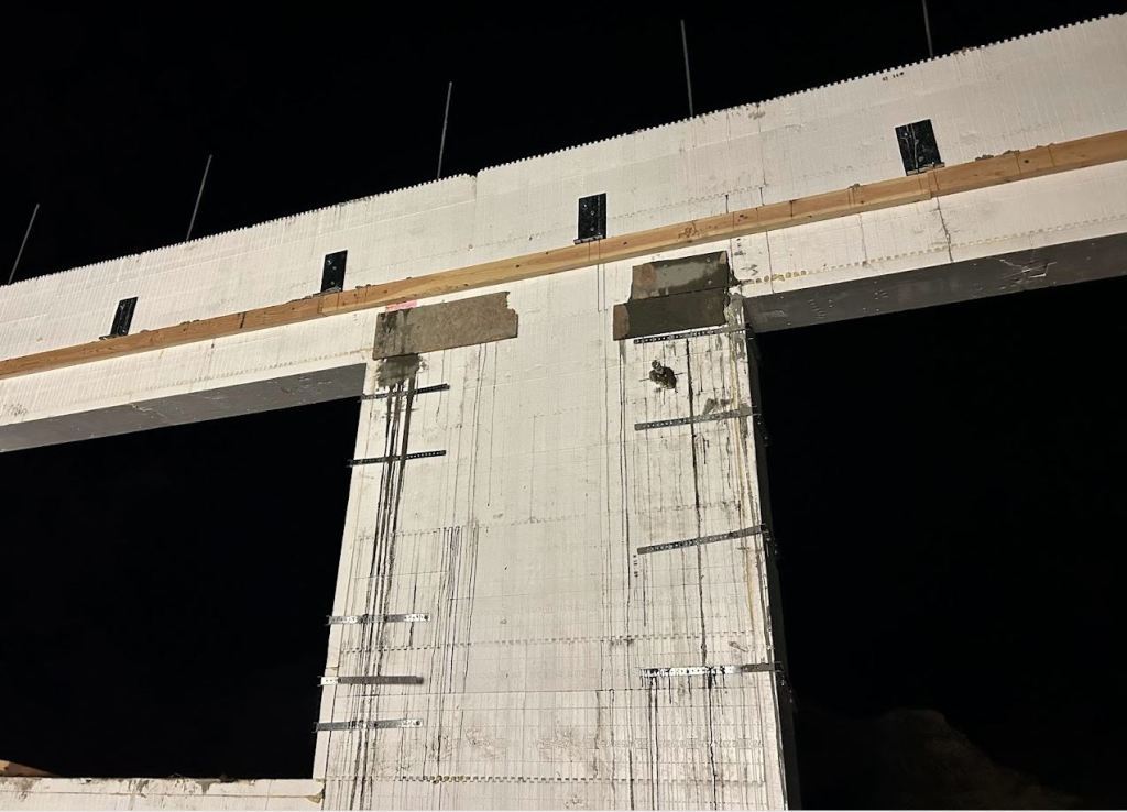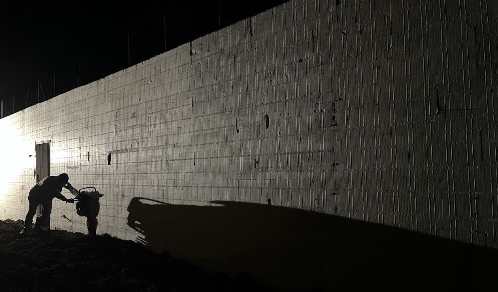 There was a good amount of demanding physical labor this week. It all started Monday when John “the ICF guy” came with another guy and removed all the bracing. Later that day I helped with filling the voids in the ICFs. Pumping the grout into the wall It was a pain! I believe we went through forty, 50 pound bags of grout cement. Overall though it was a success and I am feeling lots better about the structural integrity of the walls :). The only bad news was that we missed two smaller voids. We will do the other two small ones when we pour the second story walls.