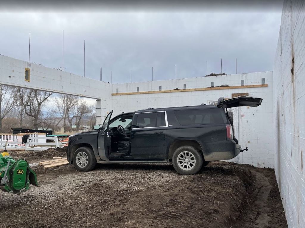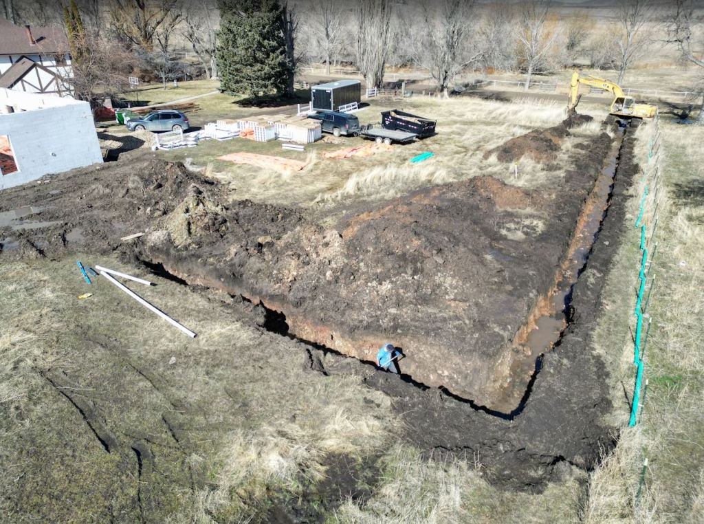 Throughout the middle of the week I declared all out war on the dumb french drain 🙂 We did end up deciding to take it all the way out to daylight. Which just happened to be another 250 feet away. For those that don’t know, that is a LONG trench and a LONG way to divert water. We did get lucky on the pipe materials though! That made me happy. I had to buy 23 sticks of 10′ green sewer pipe which is normally at least $25 a piece. Luckily, Lowes in Twin Fails had them on clearance for $5.20! So $600 in materials turned into $150. We drove all the way to Twin with a trailer for them and when we got there the store said they were buried in the back and that we should come back tomorrow……………..