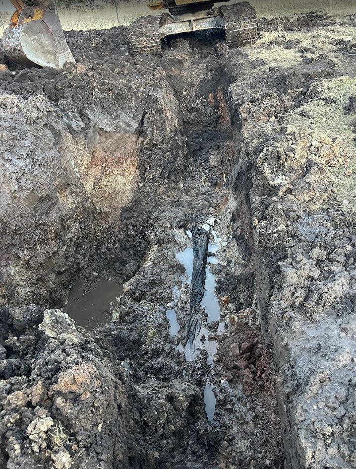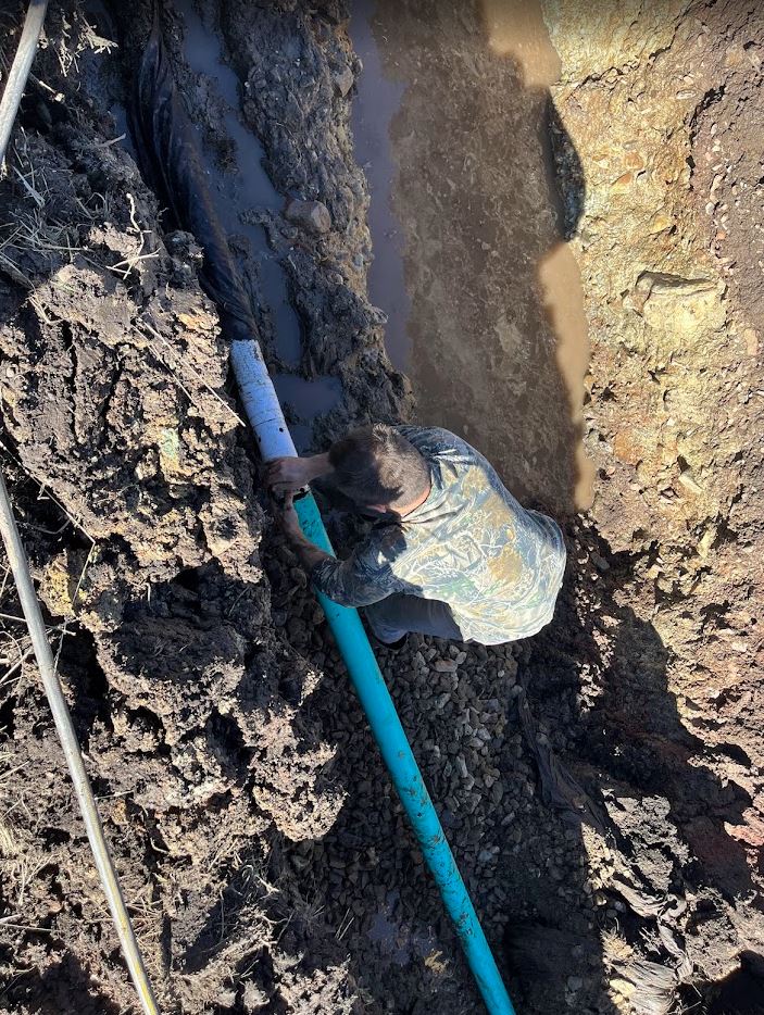 Then I start backfilling the trench, test it again and it’s not working!!!!!! I about lost it. I was physically and mentally exhausted. Digging that back up was the last thing I wanted to do. But, I knew right where to look. Right where the pipe crossed over the big hole, I was pretty sure I hadn’t gotten enough fill underneath it because of all the water. So I dug right where I thought the problem was and found it pretty quick and sure enough I crushed a pipe with the backfill. Once again another epic fail 😦