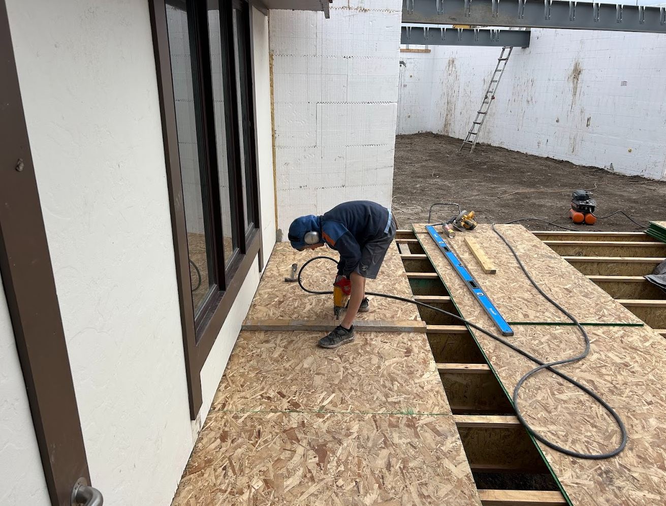 - Subfloor is installed on first floor