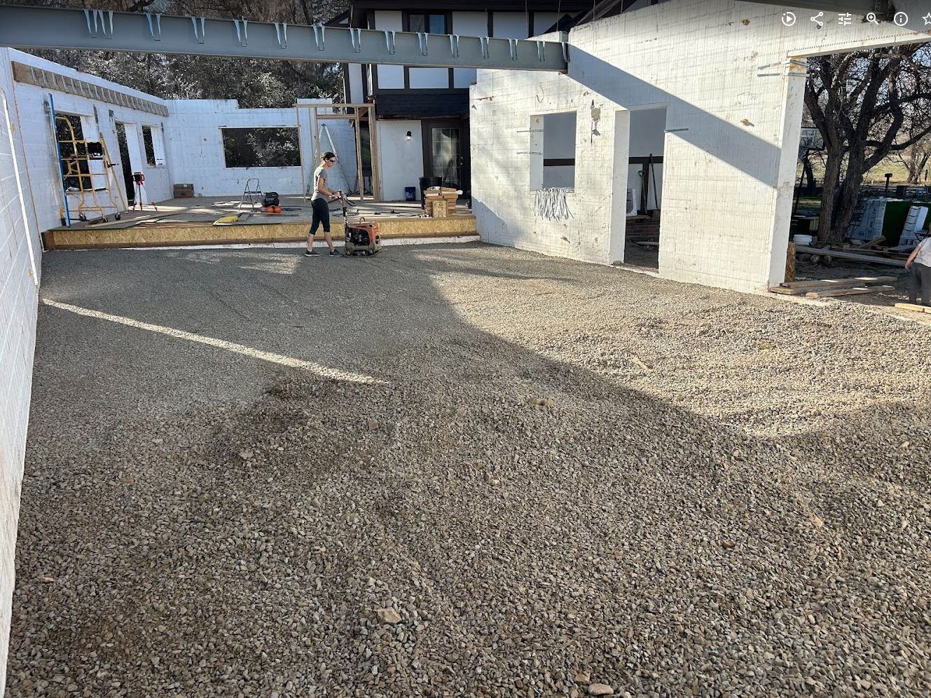 - Gravel delivered, installed in garage floor and compacted