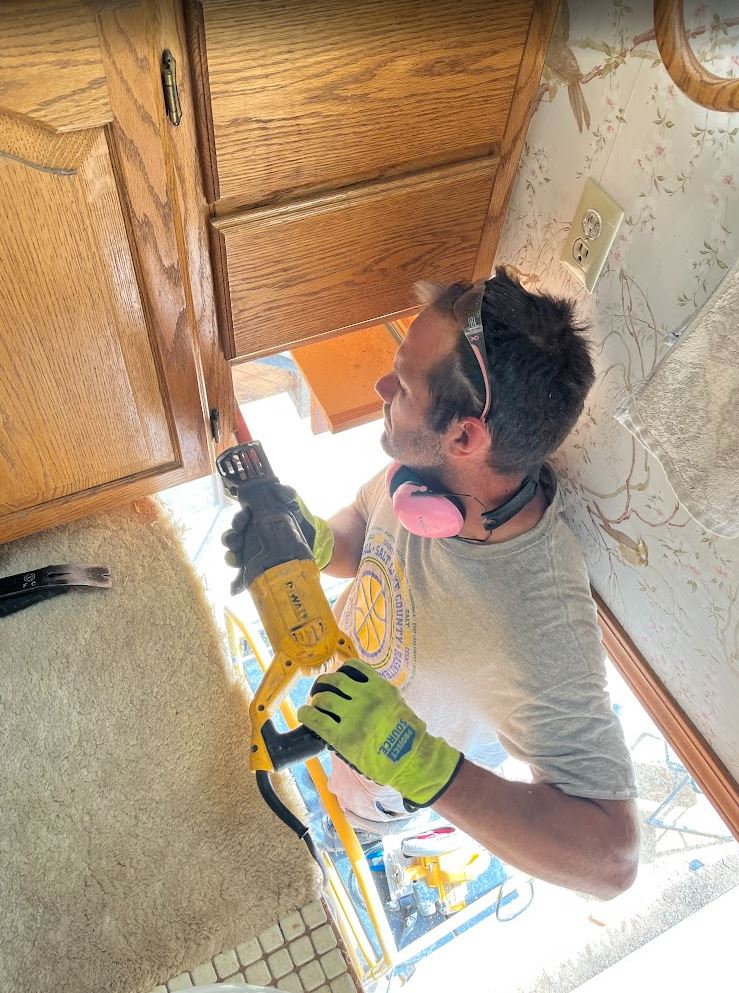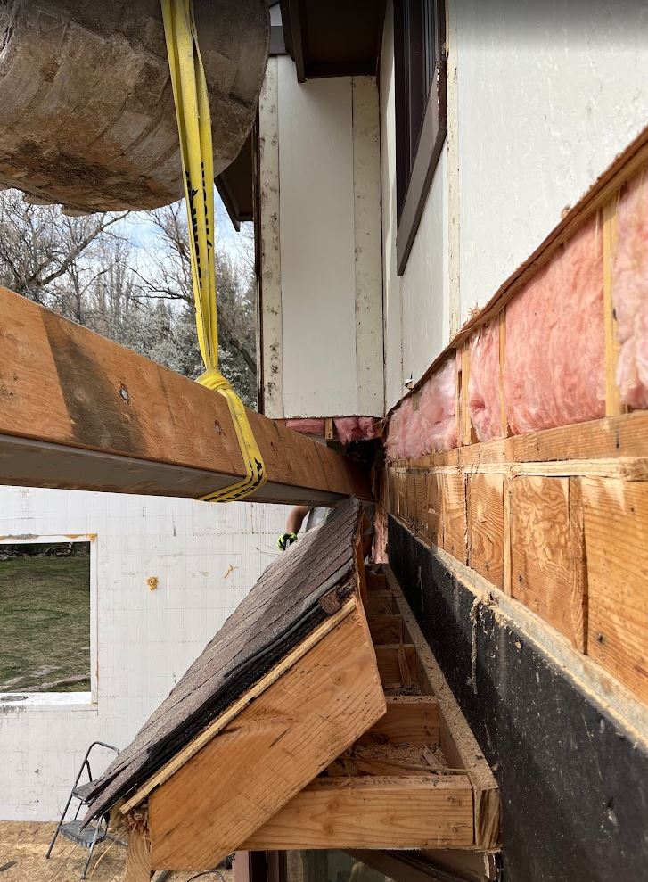 The goal was to get the last steel beam in place and patch the bathroom up in an operational state. This was not a small feat. First I had to do a lot of demo to do and when ever you do demo on this old house, you find a TON of dead bugs. As fun as that is, it always makes me nervous to expose more of the house to the elements but we didn’t have much of a choice. So I cut up the roof above the window pop out and cut out the pop out section of the bathroom floor (I even cut out all of the cantilevered floor joists that were holding up the outer wall, and somehow it didn’t all come crashing down
