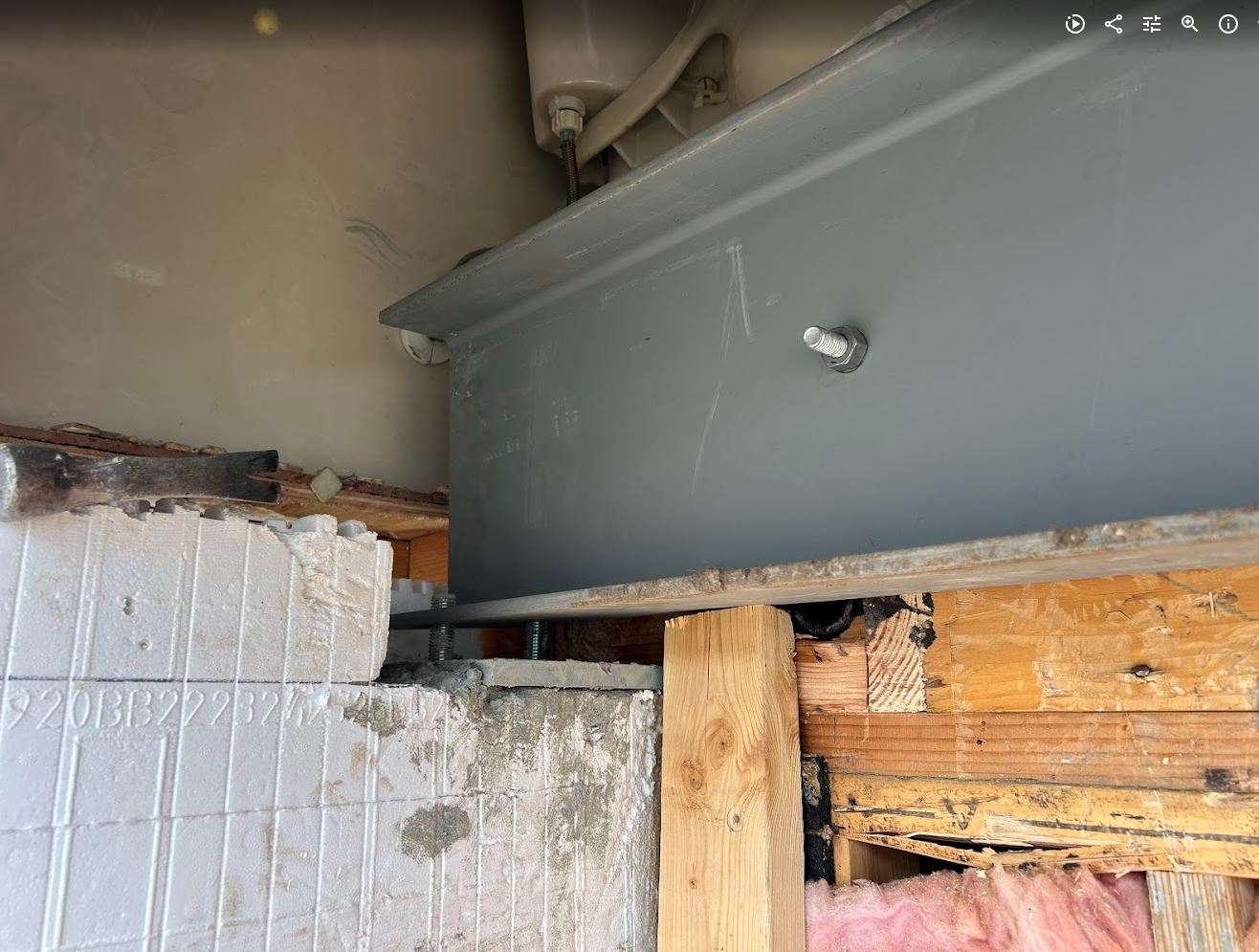 - Steel beam prepped and installed